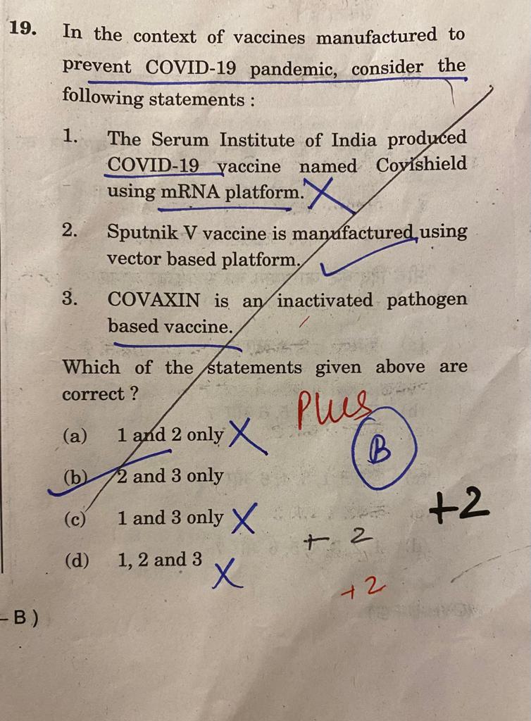 If you have been reading newspapers, you would know a basic fact that we could not really develop mRNA vaccines, for numerous reasons. Rather we relied on inactivated or live attenuated vaccines. Using this knowledge you can eliminate option 1 and tan tanaaaa— you have your answer which is option b.