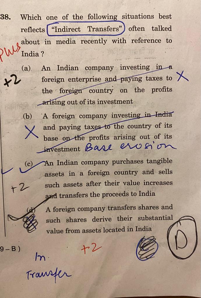 Indirect Transfers– honestly, you need not necessarily know about this. One thing you can safely assume is that the way the question is framed, Indirect transfers have been in news and probably as a problem. If it’s a problem and UPSC is asking about it—-it probably has to do with foreign companies not doing something right.